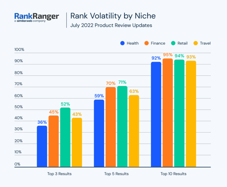 RankRanger also showed the volatility by niche for this last update: