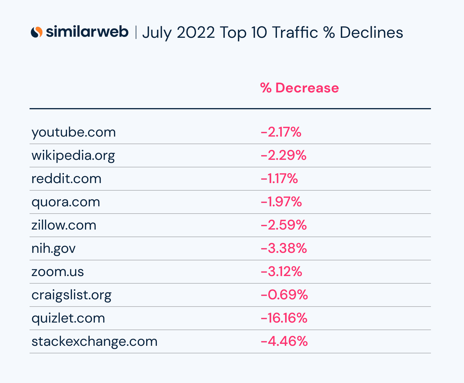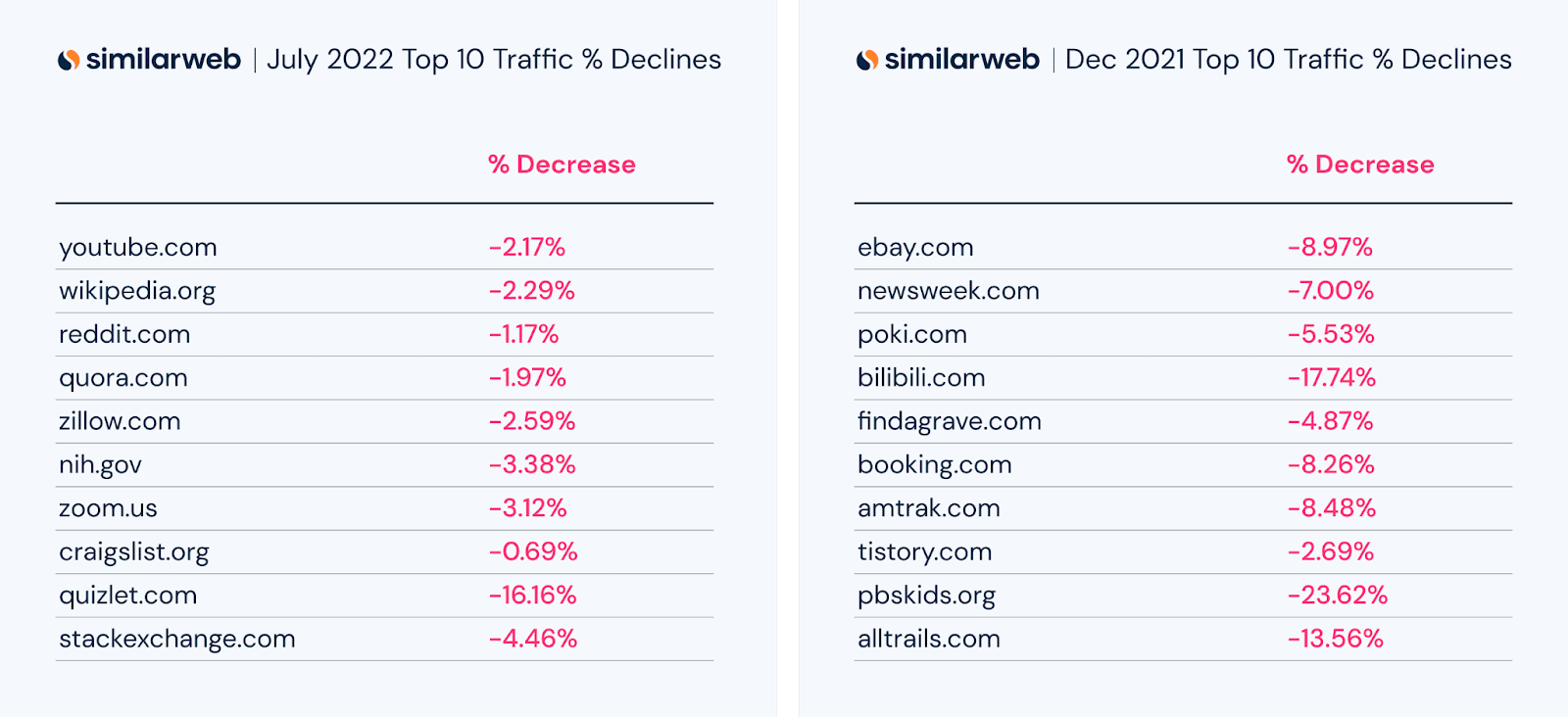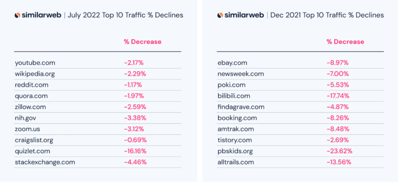 Here are some top winners and losers from Similarweb’s data: