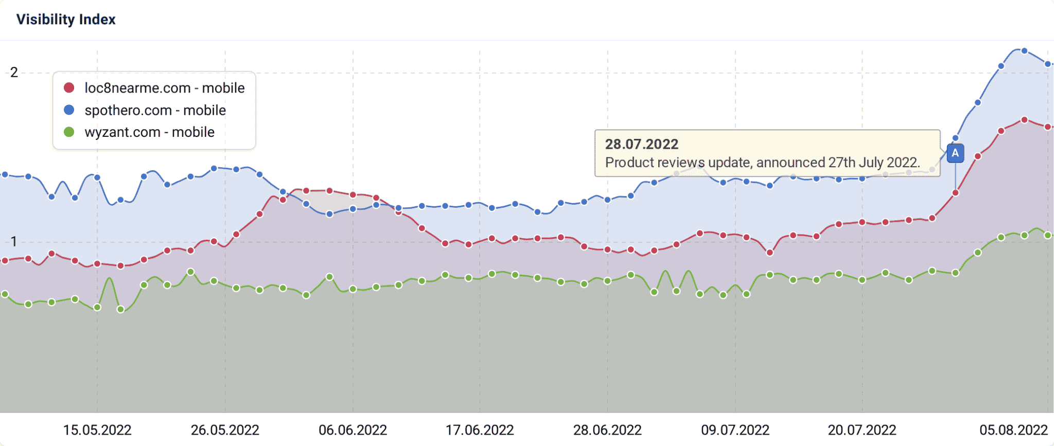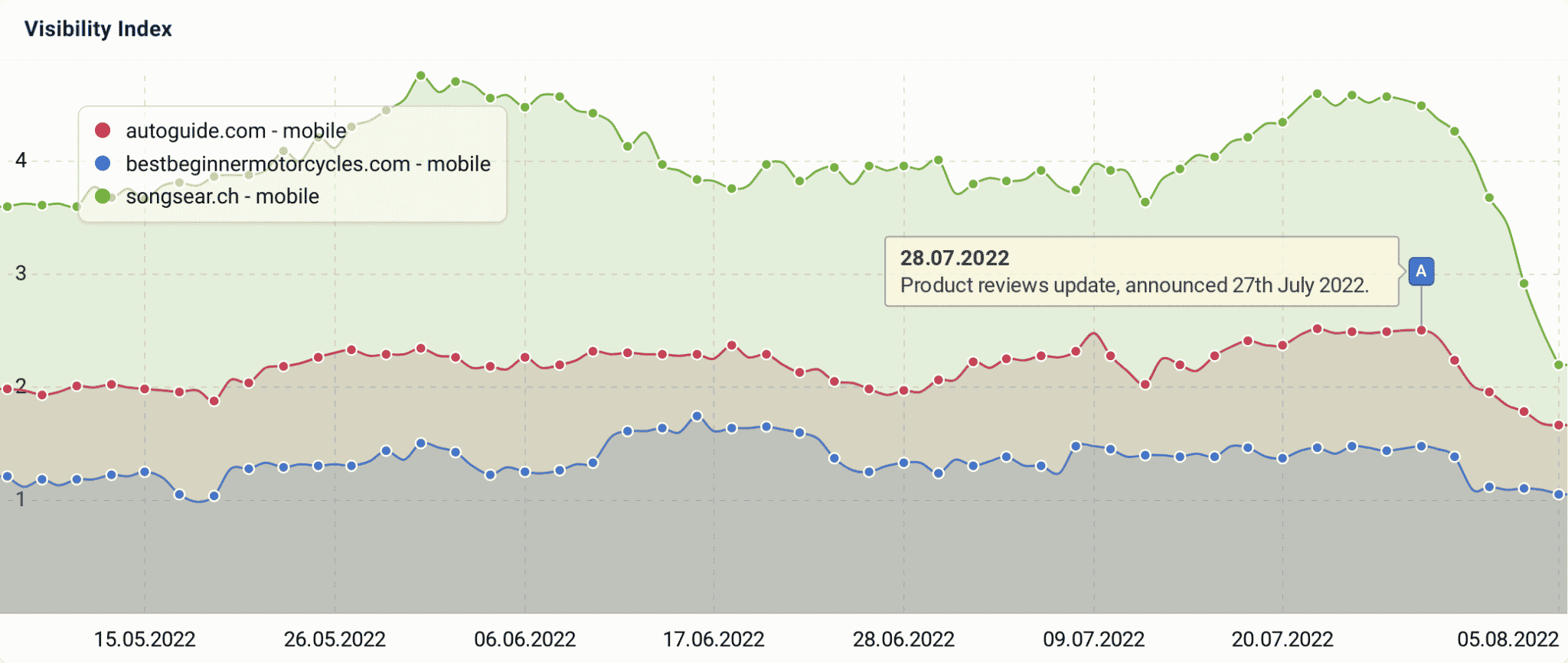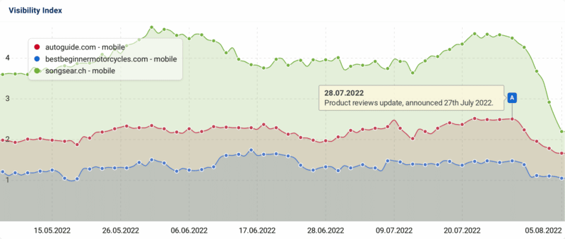 This chart below shows that the fluctuations and volatility during the period of time of the July 2022 product reviews update were limited, to say the least:
