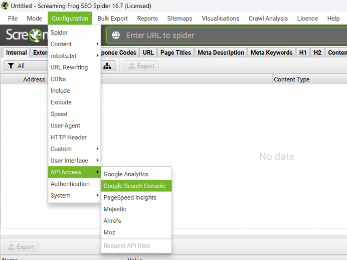 I started off with a Screaming Frog crawl that would go over the source website, identifying all indexable pages. And for an easier decision-making process, I had to pull Google Analytics and Google Search Console data using the APIs.