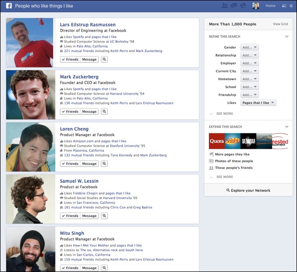 Facebook Graph Search relied heavily on Likes and other connections to determine what to show as the most relevant search results for each user.